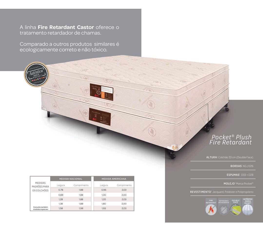 Colchão Castor Pocket Plush Fire Retardant Solteiro 0,88 X 1,88)